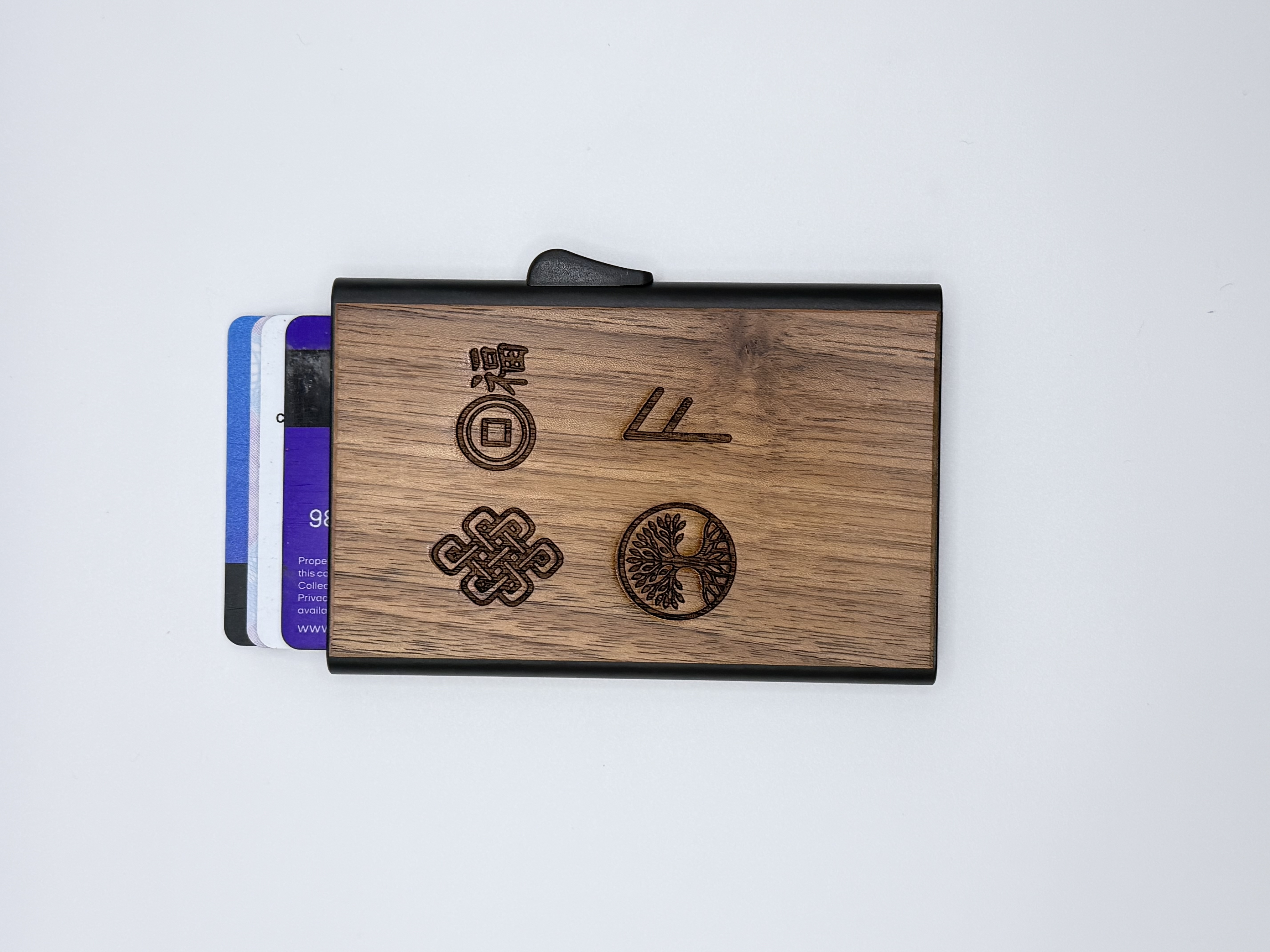 Engraved RFID Card Protector: Metal and Wood Elegance Protect your cards in style with our unique engraved RFID card pro…
